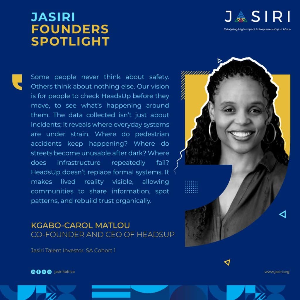 The vision is bigger than an app. “Heads Up isn’t just a safety platform. It really feels like a movement of awareness, trust, and community. My co-founder and I believe that once community trust has been rebuilt, then other forms of growth can thrive, whether it’s social, economic, or cultural. Safety depends on community trust, and that’s the need.” They’re starting small, “one neighbourhood at a time, through testing, learning, and growing organically.” But the dream? “To become the go-to community safety layer across Africa, powered by people, grounded by trust, and driven by shared humanity. Because really, when communities can trust each other, that’s when real magic happens.”